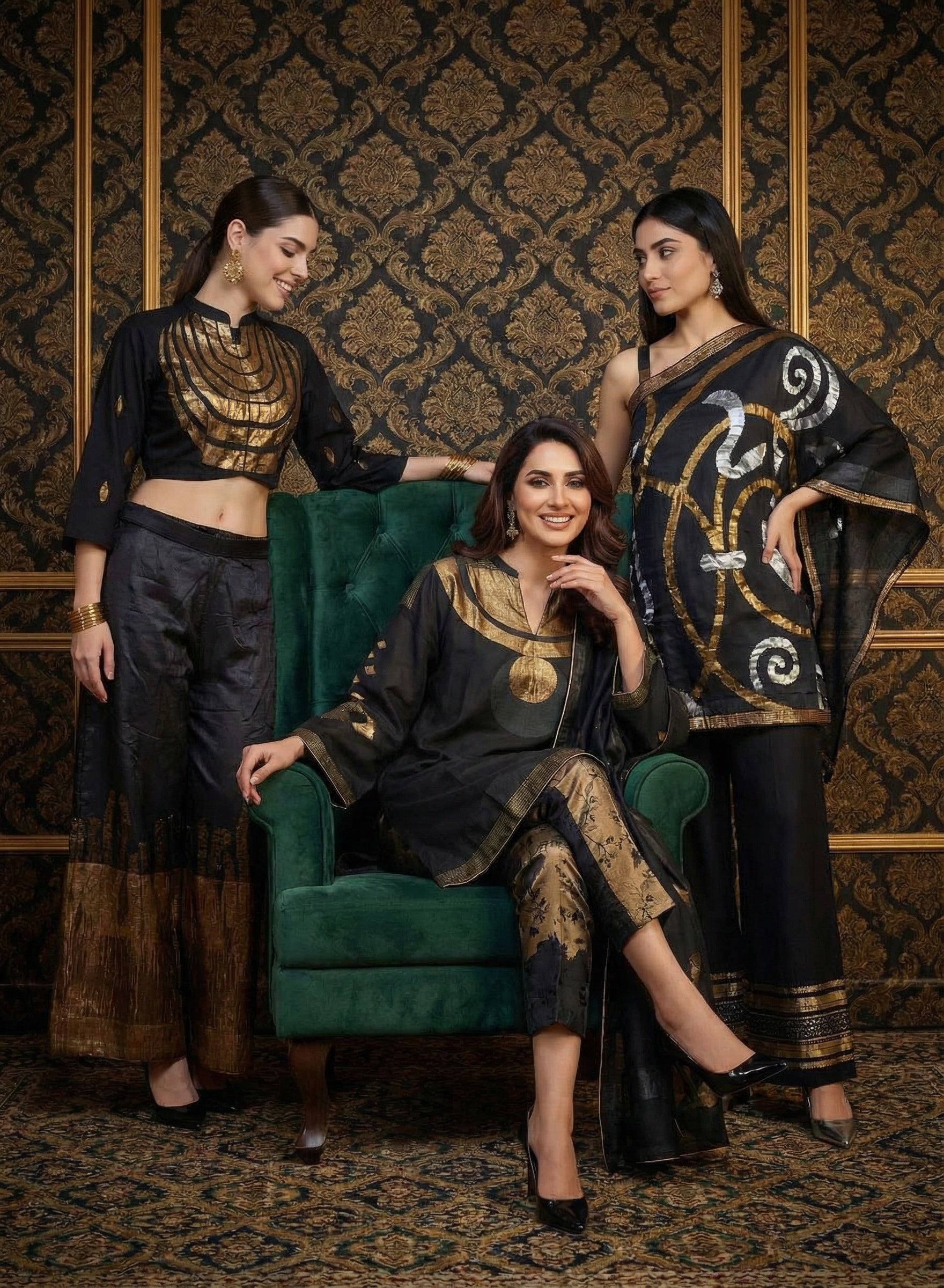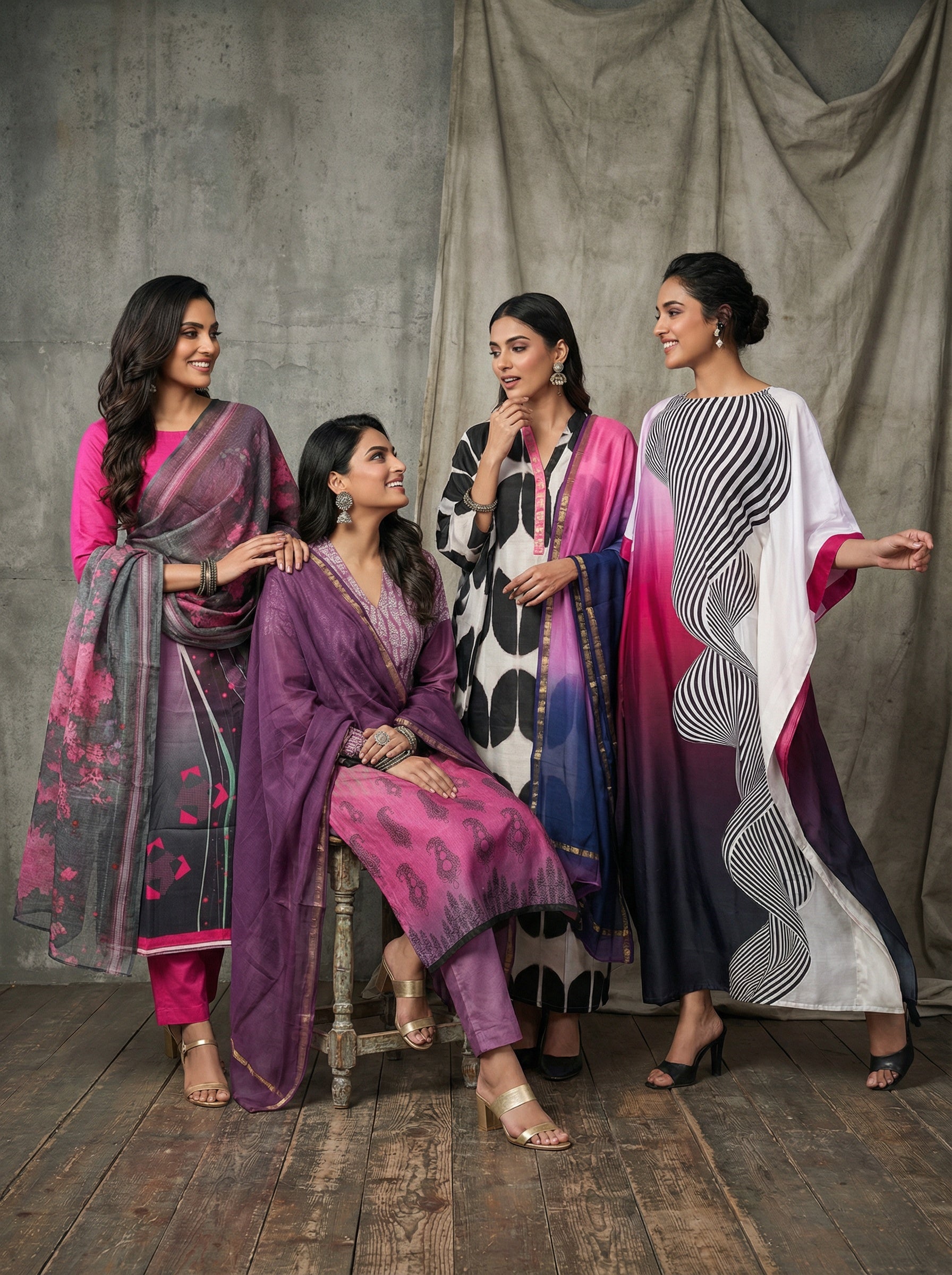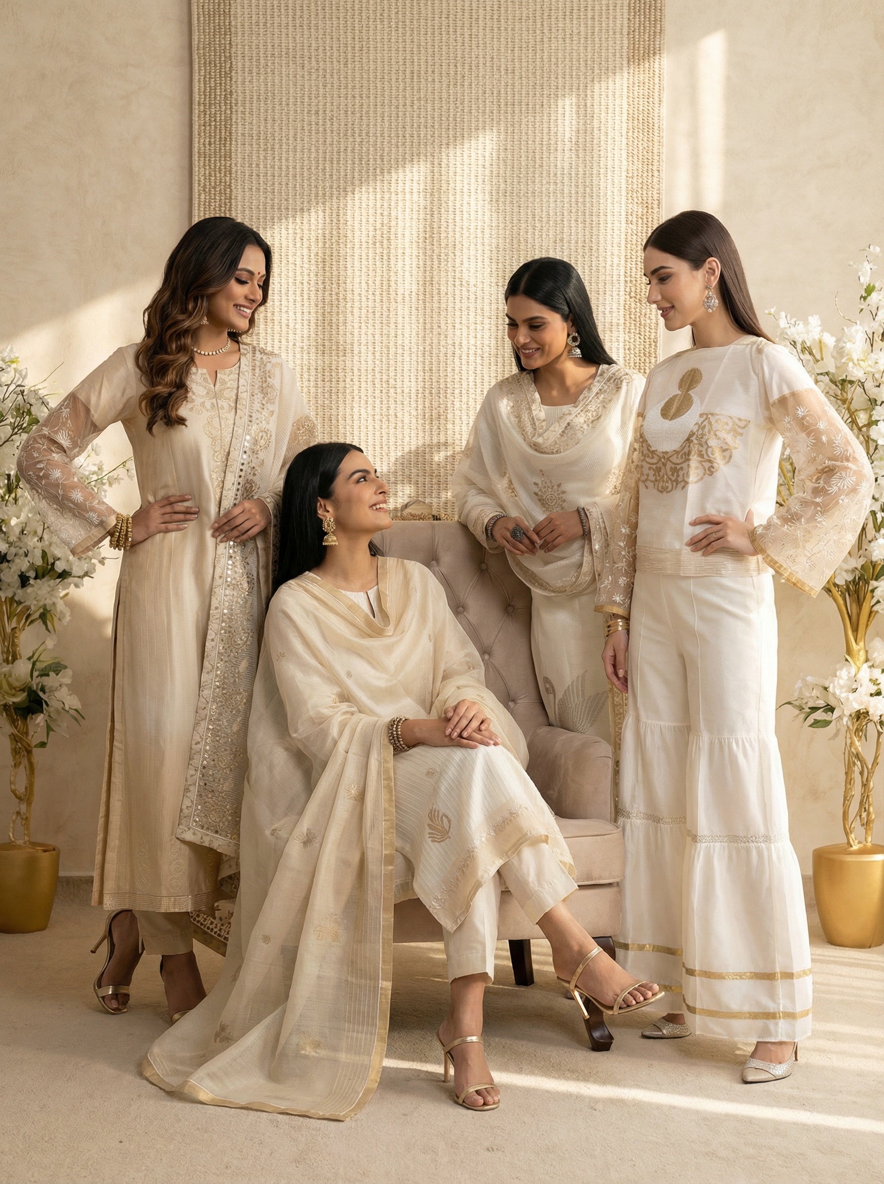 This is the most creative aspect of our work where all different assortments of dupattas are creatively coordinated to bring out a visually pleasant outcome for a universal appeal and an underlying fashion statement speaking about our signature styling aesthetics.