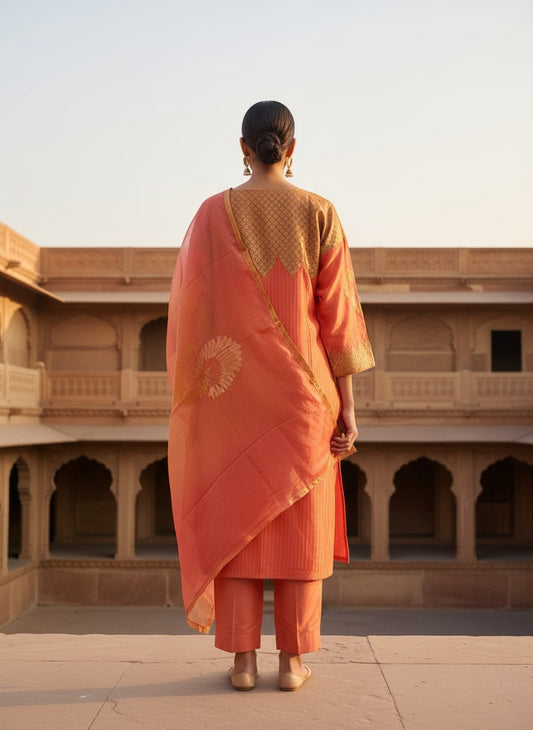 Semi Stitched Formal chanderi Suitset