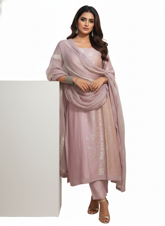 Semi Stitched Formal chanderi Suitset