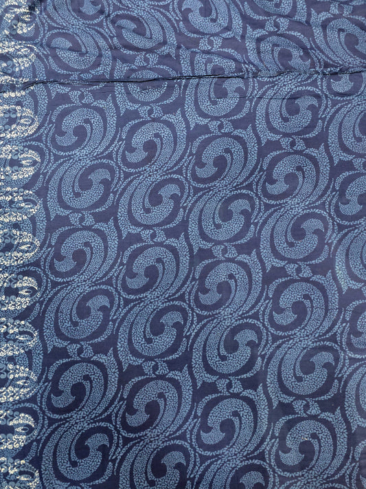 Discharge printed pure cotton Indigo fabric