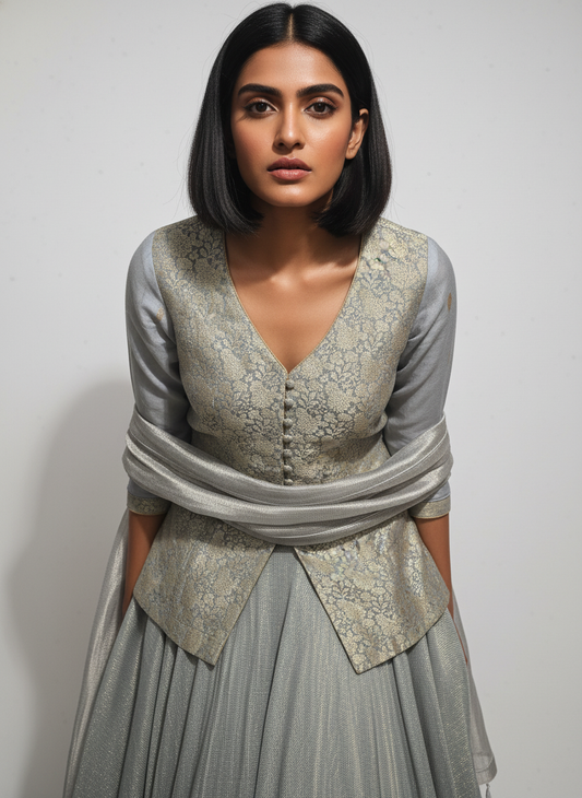 Formal Silver Tissue Skirtset (VKSKT01MAR30)