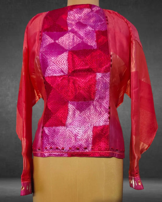 Contemporary Designer Semi-Stitched Blouse - Handcrafted in Rajasthan with Traditional Shibori Lehariya Techniques