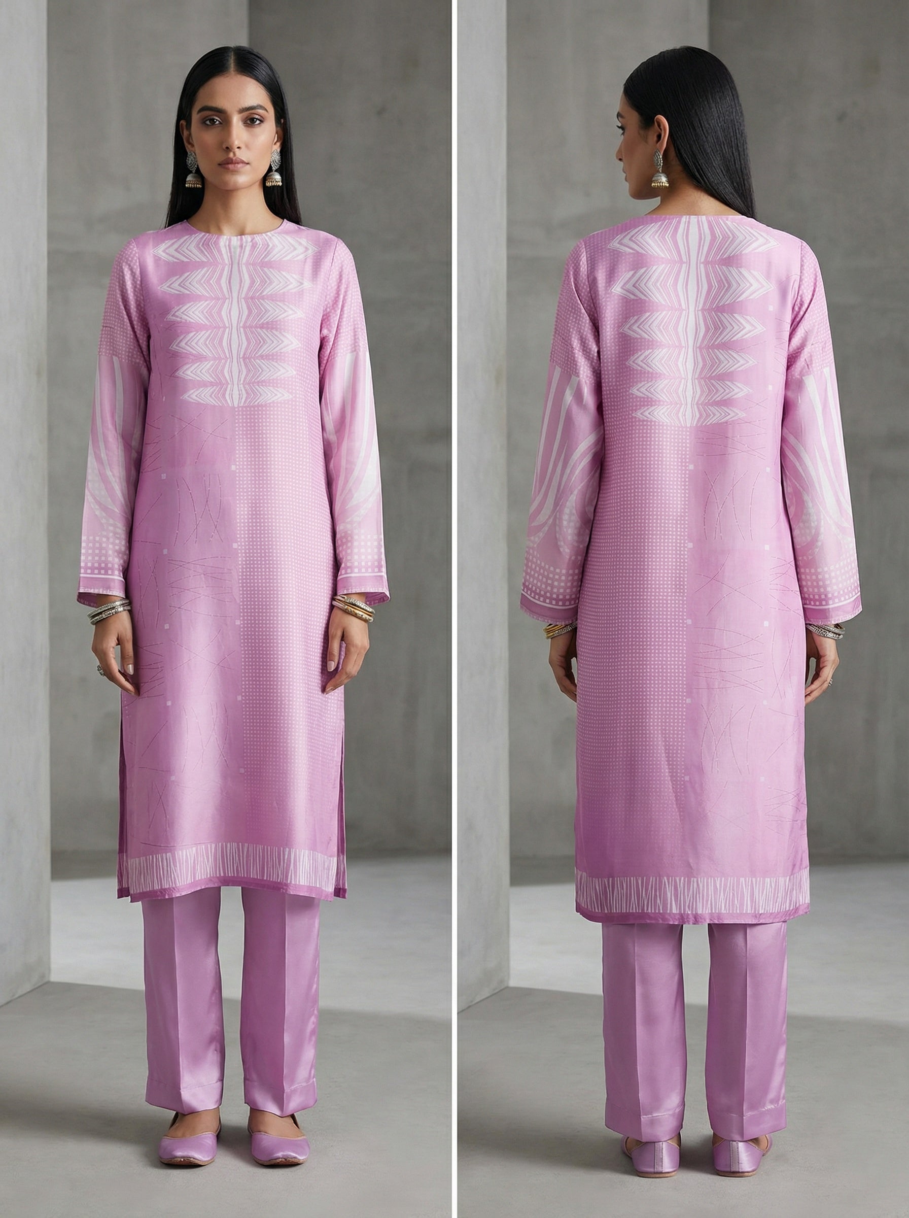 This kurta features an elegant digital printed chanderi suitset designed in unique abstract floral theme.kurta is 48 inch maximum in length but can be shortened as per requirement as there is no neckline .The single side ghera is 34 inch so sizes upto 5XL are possible to get tailored in this