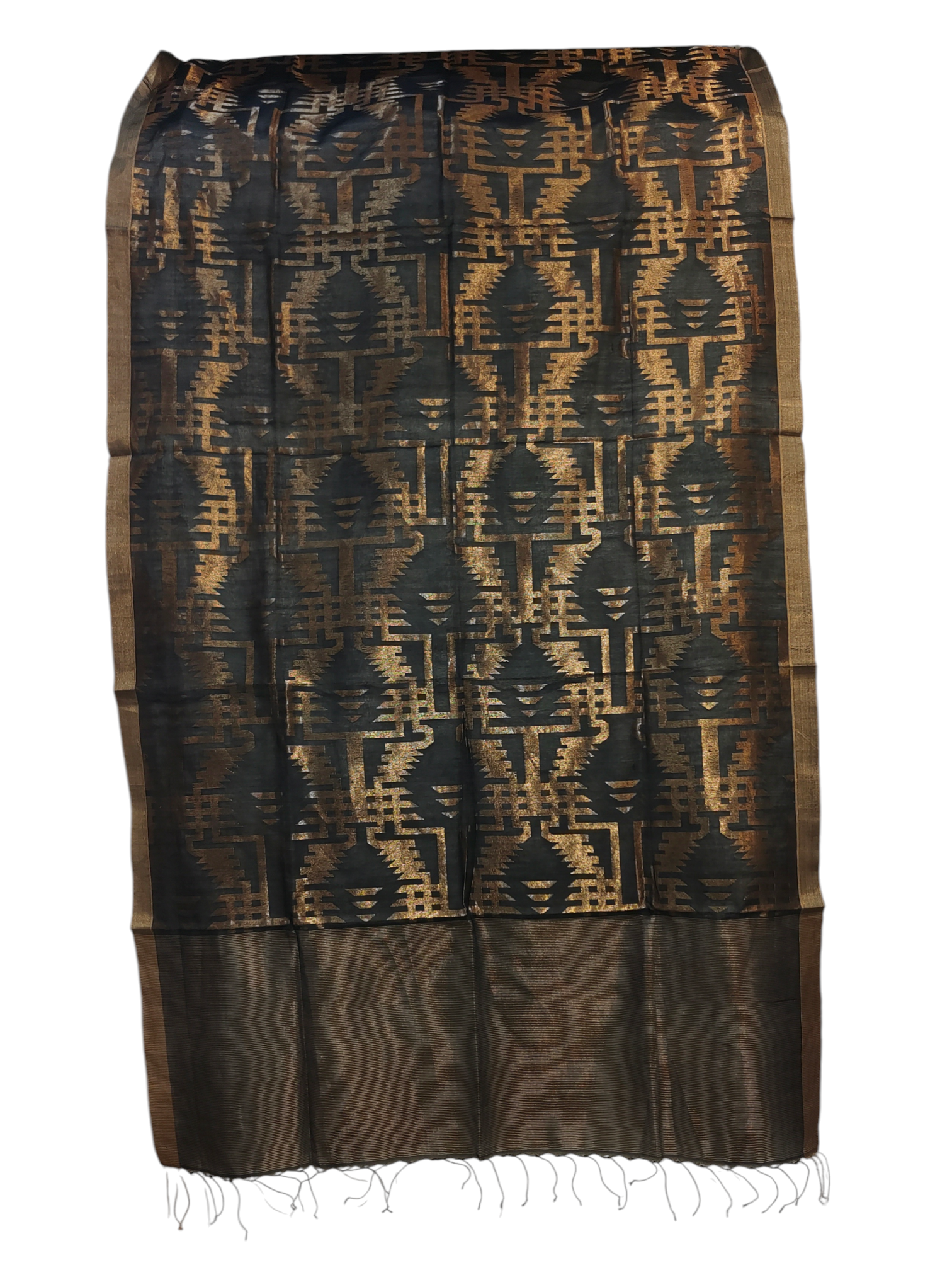 Silk chanderi dupatta with bold geometric zari patterns